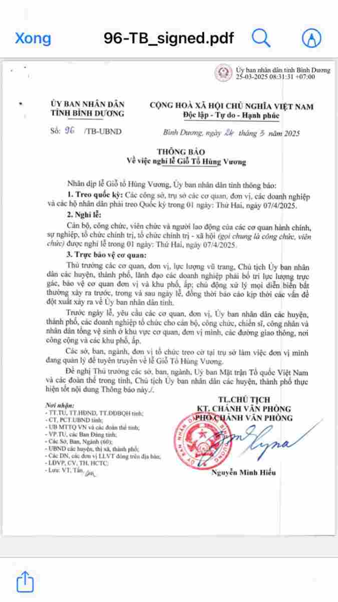 Thông báo về việc nghỉ lễ Giỗ tổ Hùng Vương